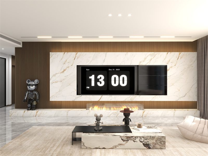 巧用白与原木的色彩搭配,呈现自然简洁的电视墙,并融入收纳设计,是生活功能与设计美学的视觉碰撞。