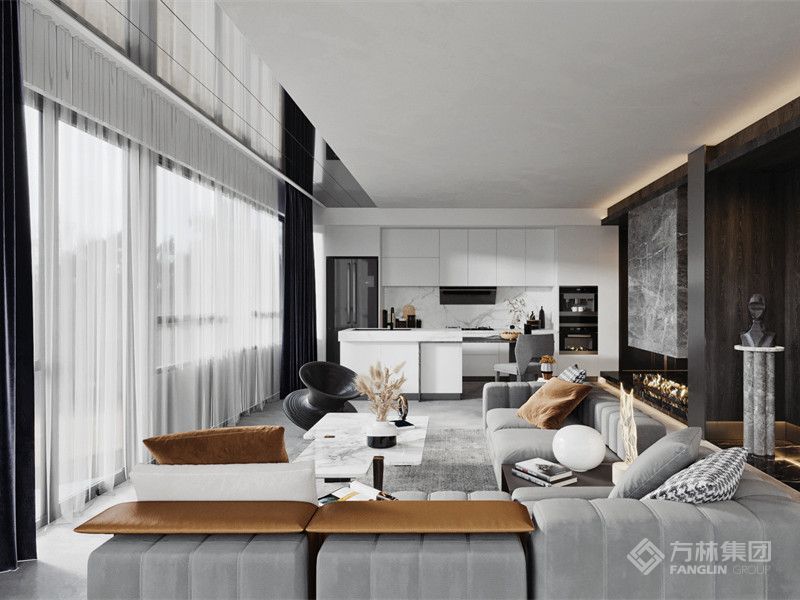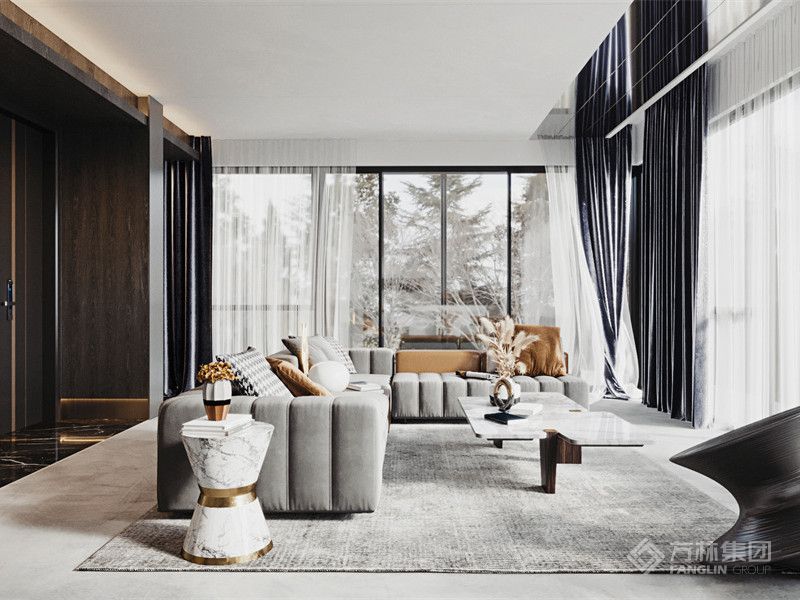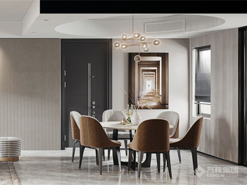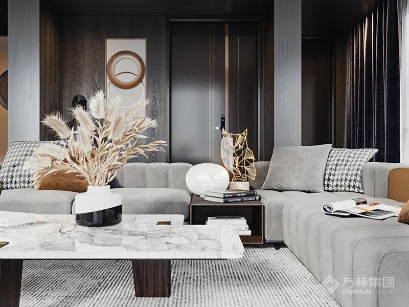 本案户型四室两厅,客厅开间够大,色调协调。植物元素从挂画内容到盆栽,虚实共存有较好的连接作用及主题感……