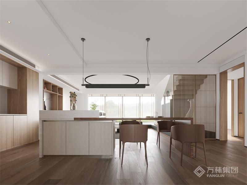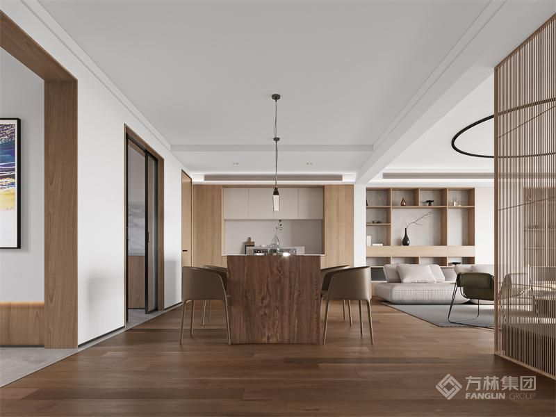 汲取大地色系的灵感,运用岩板、木格栅和木饰面的组合,打造自然舒适的生活场域。
