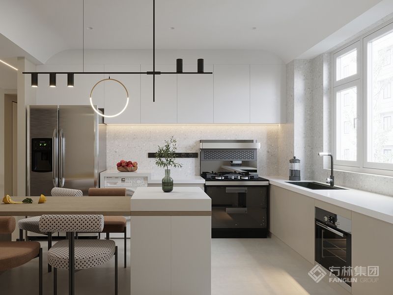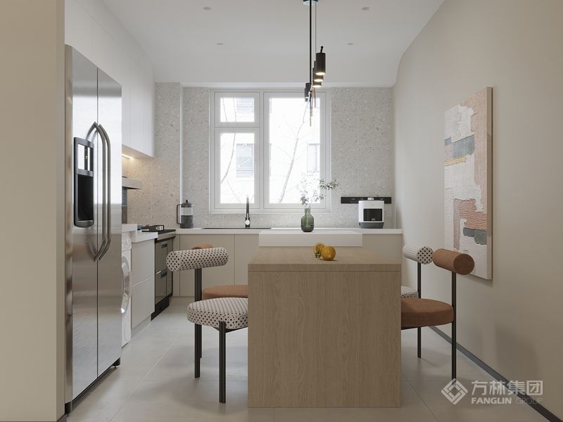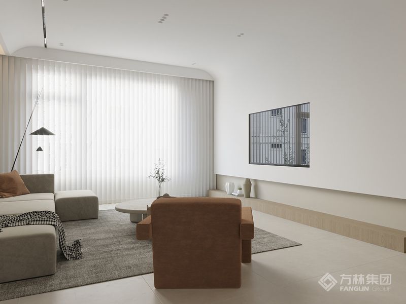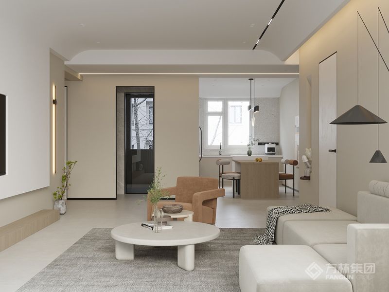 这里是一切温柔的开始。温软的奶油色调营造整个共享空间的浪漫基调,轻盈视感同色系沙发和茶几围合出一家人温馨舒适室的起居中心。