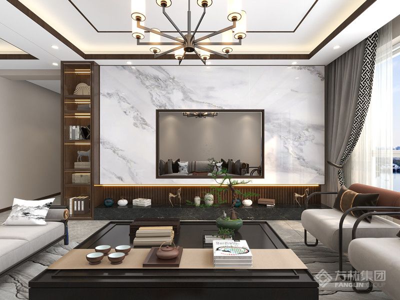 客户是中年夫妇,比较喜欢实木质感,所以在风格采纳上更喜欢传统风格,结合现代的风格,能够体现流行还保留传统,整体色系都围绕胡桃木颜色,全屋壁布,背景墙采用理石上墙,气派的同时客户觉得更好打理,增加视觉开间