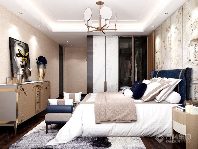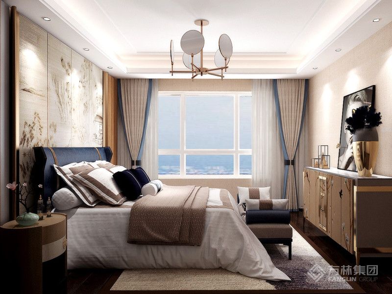 客户家里四口人,有两个孩子,喜欢实木家具,但又觉得纯中式家具贵而且太老气,最终确定新中式风格,两个卫生间保留。居住人口多,多考虑储物空间。根据业主的生活习惯,在室内空间布局上,新中式风格设计一般会使用博古架、垭口等来进行空间分割。同时装修中所采用的简洁硬朗的直线条,更是让这些带有古典色彩的家具和物件有一种从传统到现代的过渡,既体现了中式的内敛、质朴,有表现出现代的时尚与简约,在中国传统建筑中,非常讲究对称美,而这种对称美同样被保留在了新中式风格设计理念中。对称手法的讲究源自于中国古代“阴阳平衡”的思想观念,而在新中式中,这种对称手法的运用则更直接表现出中国传统文化之美,让家居环境更显得简洁明了。
