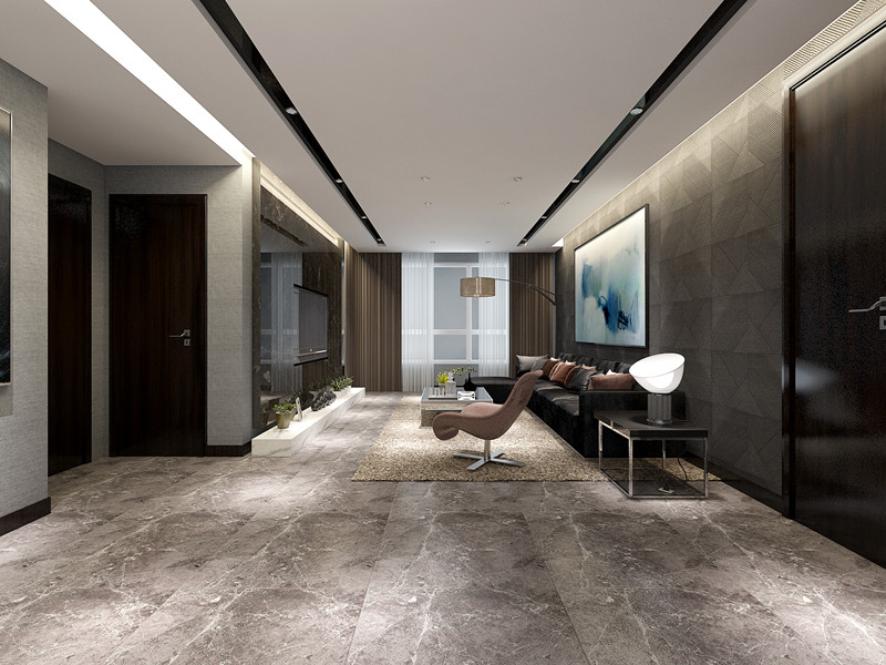 宽敞的客厅,运用色彩搭配出儒雅而时尚的氛围,电视视墙采用现代感的大理石材料同时展现出业主的干练感。落地窗与空间内灯光的结合,光影交织间让光明充满客厅。