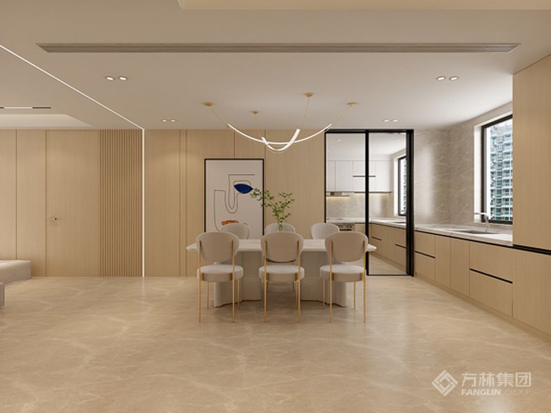 在设计方案中加入了大量的木饰面,局部以艺术涂料来点缀,用线性灯来增加整体吊顶的层次与氛围。
