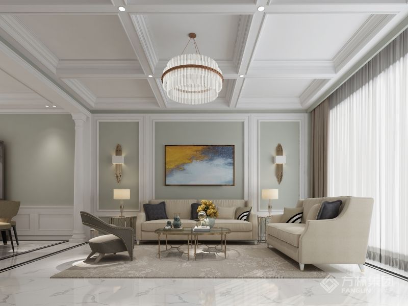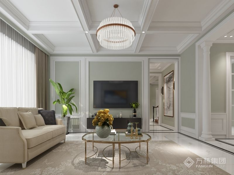充满美式元素的客厅吊顶让空间显得更加的华贵