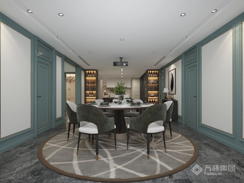 项目以欧式风格为基底,融入现代元素。整体空间散发出一种独特的现代艺术魅力。空间内以绿色为主,其他色彩加以点缀,既保留了现代的简洁元素,又拥有欧式的浪漫大气。