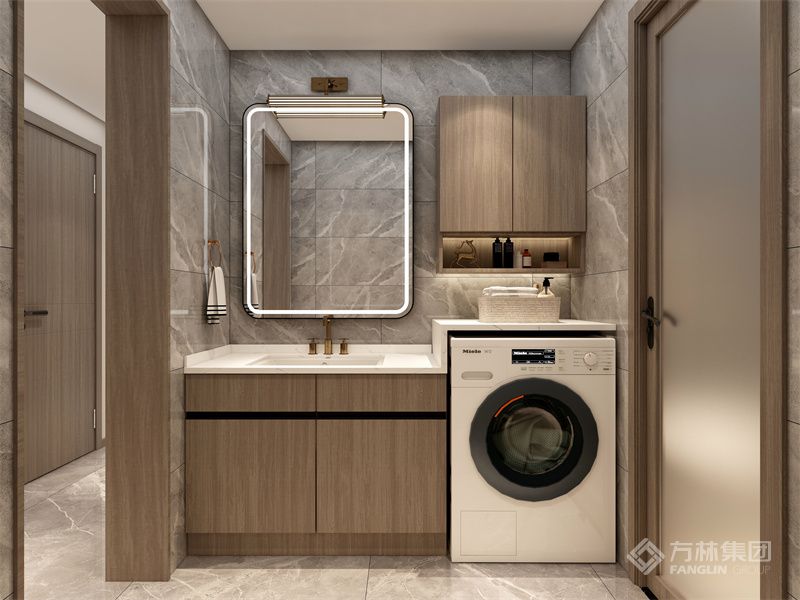 • 卫生间自然清爽之中又不乏创新,黑白灰中性色的使用令空间更显高级。