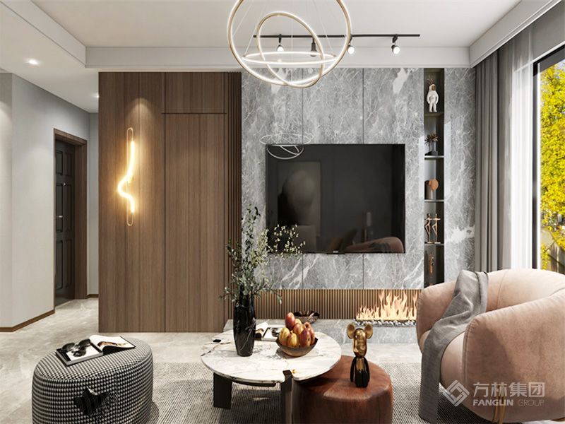 高雅的灰色调,简洁的线条,精致的质感,沙发搭配对比色又不同质感的抱枕,在深色的空间氛围里,渐变灰色的地毯脱颖而出,平衡了色彩之间的明暗关系质感,三者相加创造了一个高雅内敛的室内空间。