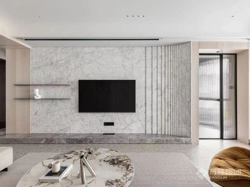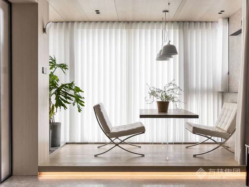 一家四口,整体以白色和浅色的墙板以及自然纹理的石材,全屋采用无主灯设计。