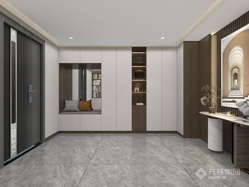 从硬装部分的地砖、柜体到软装部分的沙发、布料、没有太多的造型以及浮夸的材质处理,简单的线条和材质的拼凑,让空间没有过多的刻意设计,保留本真,合理动线,水到渠成。 设计师抛弃现代风格黑白灰的固有思想,保留现代的干净清爽,增加轻奢元素,让整个空间更加的温润、高端,更具有家的凝聚