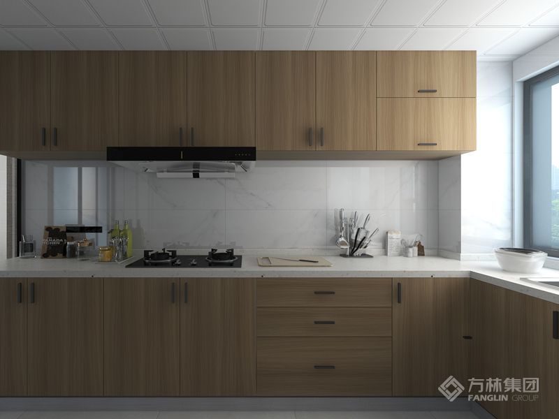 户型是最为普通的标准类型,两口人居住,对空间整体舒适性和采光有要求,并且需要大一些的储存空间,所以在有限的空间和预算内,我的整体解决方案是厨房外扩,考虑到油烟问题,还是使用封闭厨房,但是橱柜空间加长了1米左右,大大解决了厨房储物问题,卫生间改成拉门,并且保留一侧墙垛,手盆内嵌,不会缠手卫生死角,整体色系偏浅色,柔和,深色做点缀,从而使整个空间开阔明亮的同时,不失品味格调。