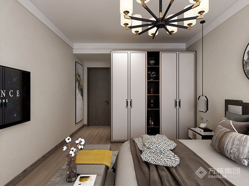 本案是现代中式设计,以现代人的审美需求打造富有传统韵味的空间。家具材质沉稳,呈现东方情调,空间整体感更轻松自然。