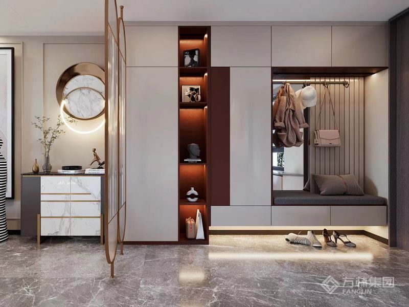 谁没有幻想过拥有大落地窗的绝美江景房呢?在雾都滨江路边有这样一户房子,看得到美景的大横厅,让视野无限延展,窗外的景色如同一幅随时间变幻的油画,每天都有如此 “宝贵”的美景,不禁令人好奇,它的室内会是什么模样?推开门厅,仪式感满满。