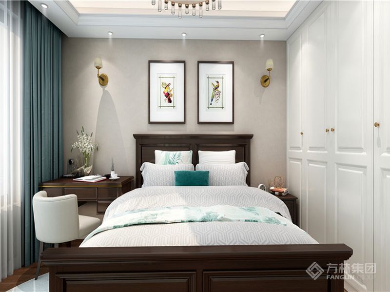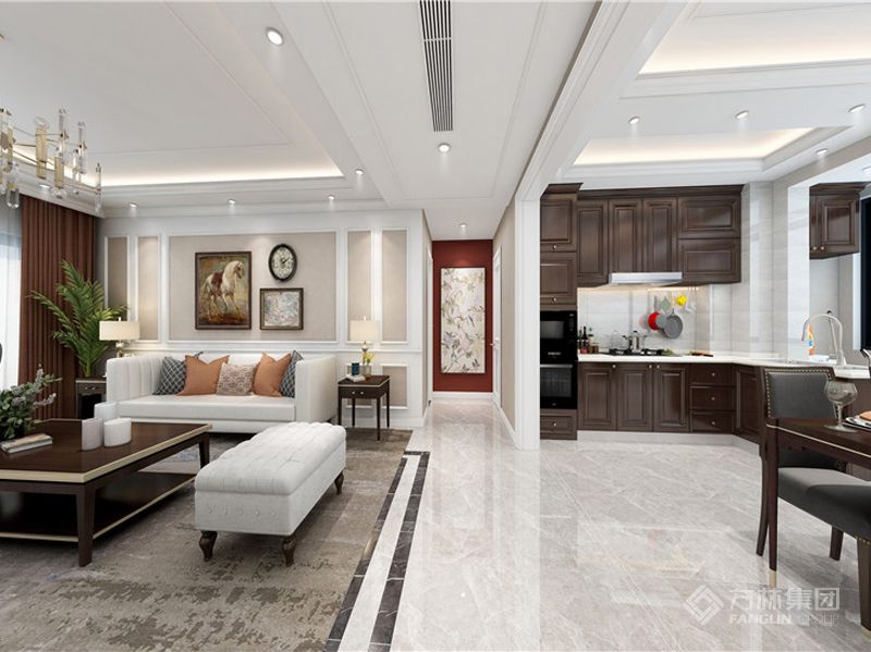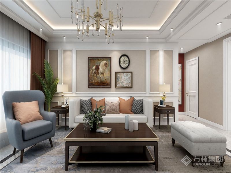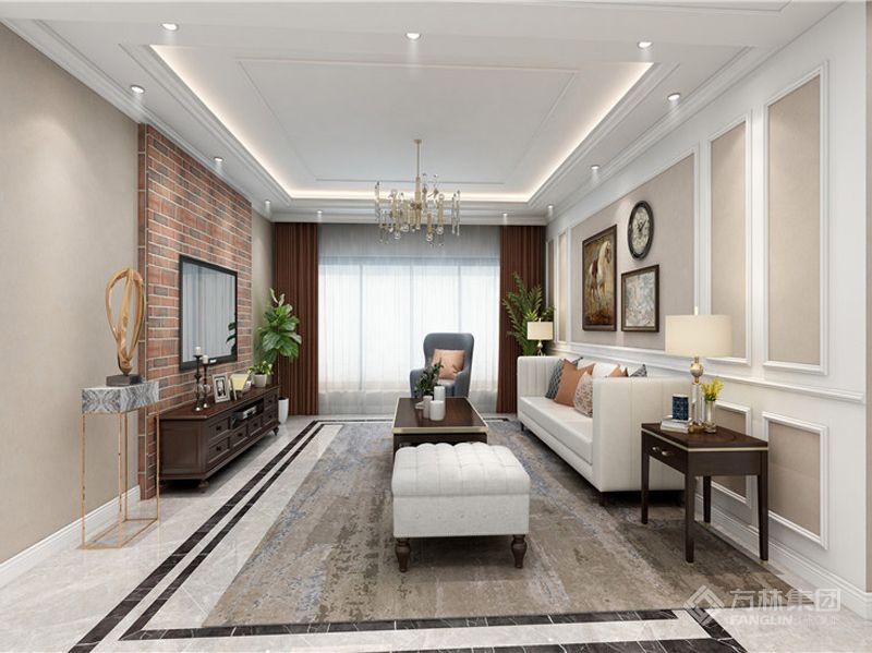 本案以美式的风格为主,简约的家具搭配简约极具个性的背景墙,分明的层次和舒适的观感相辅相成,很好的融入整个空间,为业主提供一个舒适的居住环境。电视背景墙的设计融入了对称式设计,把门融如造型中特别而又完美。
