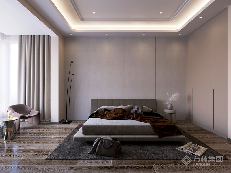 "本案各个功能区域划分合理,充分利用空间的同时又有十足的动线。采用开放式客厅,客厅、餐厅和厨房的完美融合,两个阳台相对,不仅保证了采光,而且显得大气十足。空间以灰色、白色、原木色为主色调,辅以暖橘色、墨绿色和些许粉色作为点缀,整个空间显得自然舒适,又不失格调时尚感"