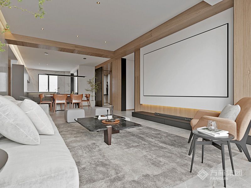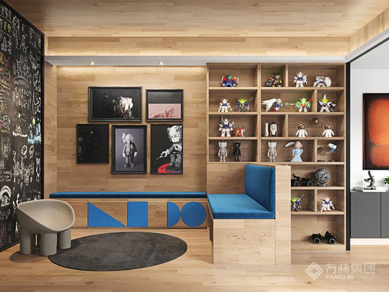 这是洋房一层带负一的户型,在考虑负一的采光的同时,根据业主需求以孩子学习成长为中心。我们打破了传统的厅室概念,重新整合房屋的序列,由动到静的行为在空间中形成一个渐进的序列。