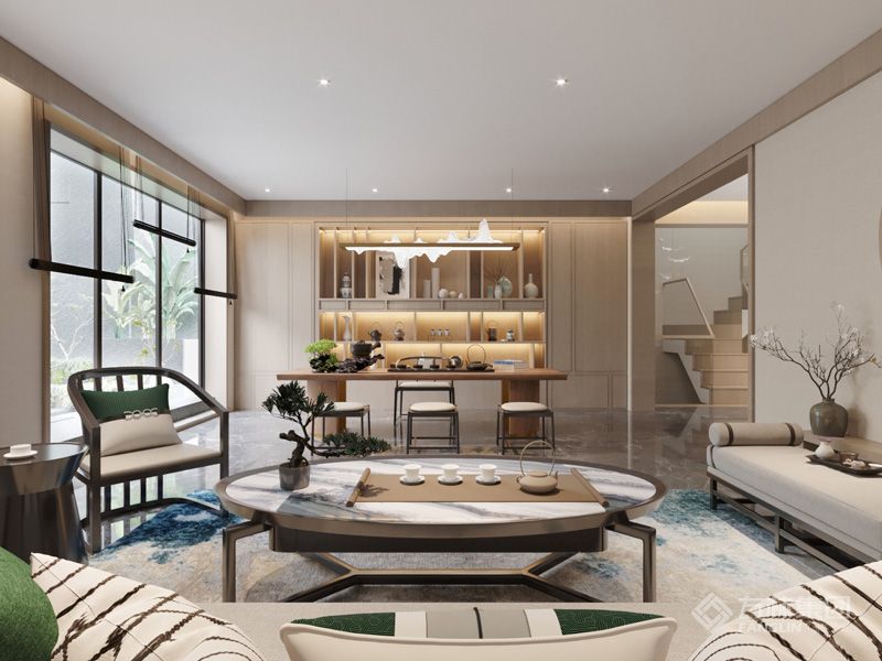 中式美学 饱含底蕴大道至简,可纳万象,东方韵境,水墨为上。东方文化的精髓在于化繁为简,在意境,在留白,在淡妆胜浓抹的低调奢华。 水墨天生的灵性,已是飘逸出尘,再以青山为佐,奇松助兴,浑然天成般如诗如画。而时间的劳绩则以现代的艺术手法被彰显,风雅幽远与精致张力双重审美情趣, 被促成在同一空间,造意出具有东方文化精魂的现代质感。在城市的繁华,与归隐的闲适间,以设计的灵感为契机,寻找到一种平衡点,浸润了万古风雅,它是心中的桃花 源。简单 交替 在文化古都的包裹下与当代调性相融合,木质 金属 硬包 天然石材不是去颠覆什么而是能营造什么样的空间环境能与当下的生活艺术并行。