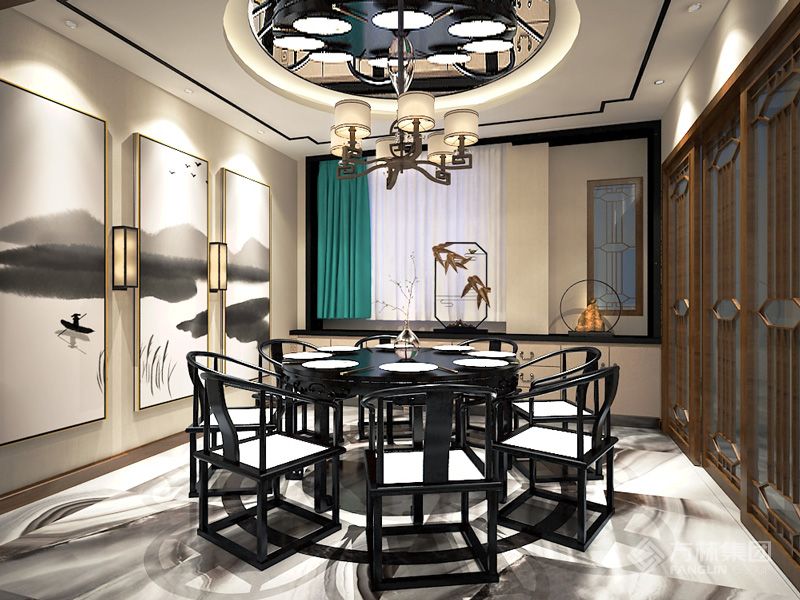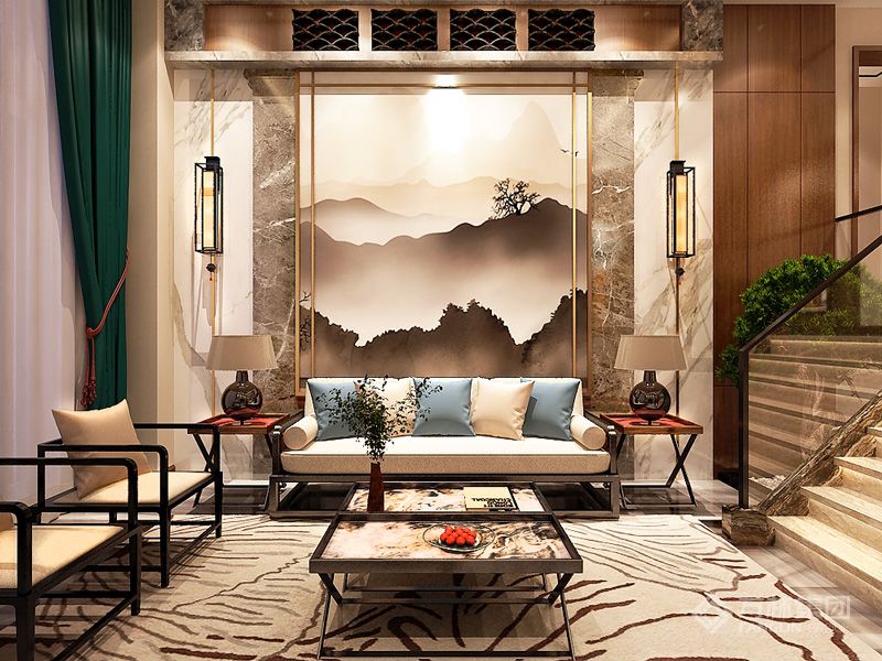运用新中式设计理念,也融入了少许轻奢元素,在视觉上给人一种大气的感觉