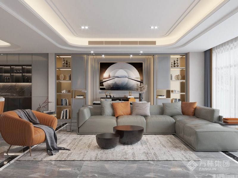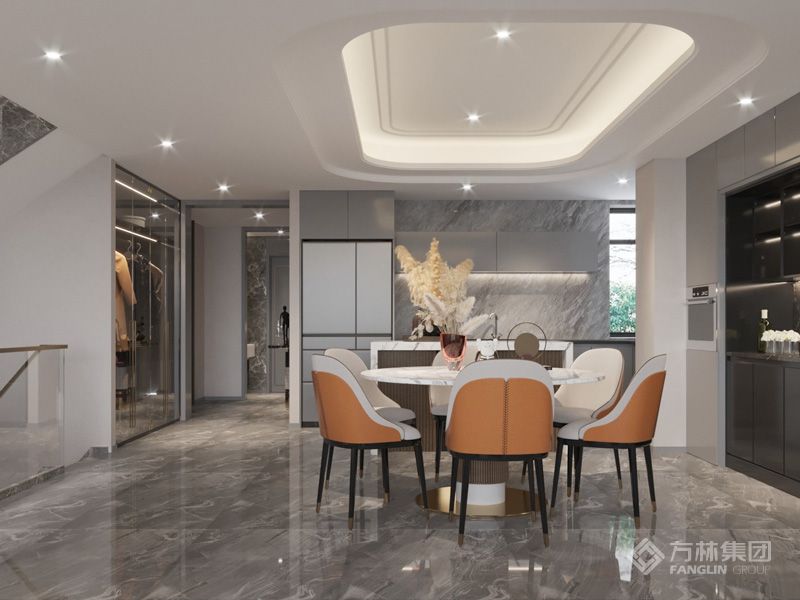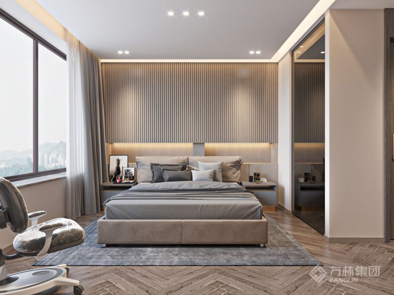 圆润软饰以金属镶嵌/所有的疲惫都被主卧内的惬意拥囊而消弭/开放式衣帽间临窗而设/若隐若现/似隔非隔/