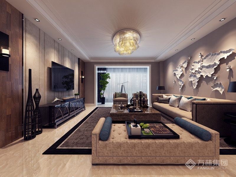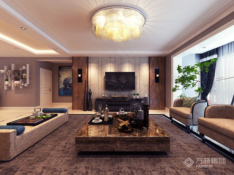本案是现代中式设计,以现代人的审美需求打造富有传统韵味的空间。家具材质沉稳,呈现东方情调,空间整体感更轻松自然。