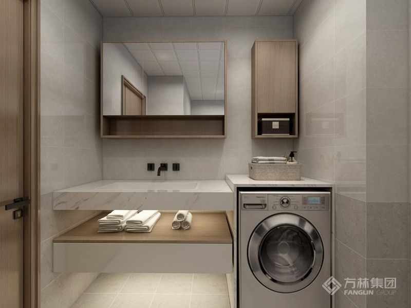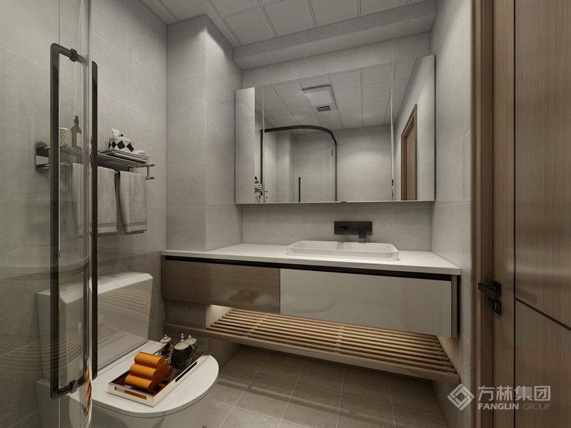 "本案各个功能区域划分合理,充分利用空间的同时又有十足的动线。采用开放式客厅,客厅、餐厅和厨房的完美融合,两个阳台相对,不仅保证了采光,而且显得大气十足。空间以灰色、白色、原木色为主色调,辅以暖橘色、墨绿色和些许粉色作为点缀,整个空间显得自然舒适,又不失格调时尚感"
