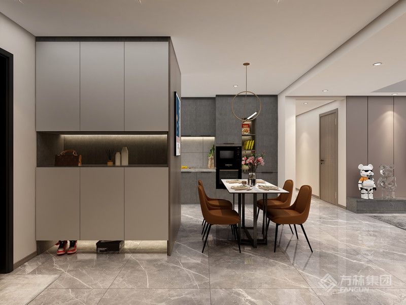 原户型很方正,结构也合理,不需要大拆大改去体现设计的价值,设计运用护墙板、硬包、岩板、金属等多种材质,营造了一个年轻时尚、高级有质感的空间,使业主身临其境的感受生活的美好与雅致。