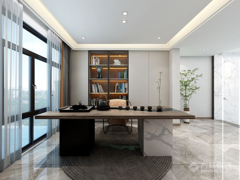 本案是现代中式设计,以现代人的审美需求打造富有传统韵味的空间。家具材质沉稳,呈现东方情调,空间整体感更轻松自然。