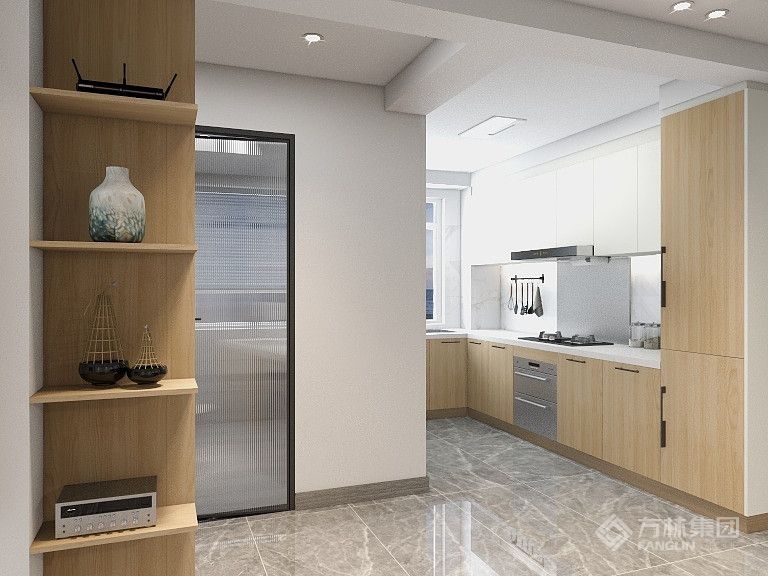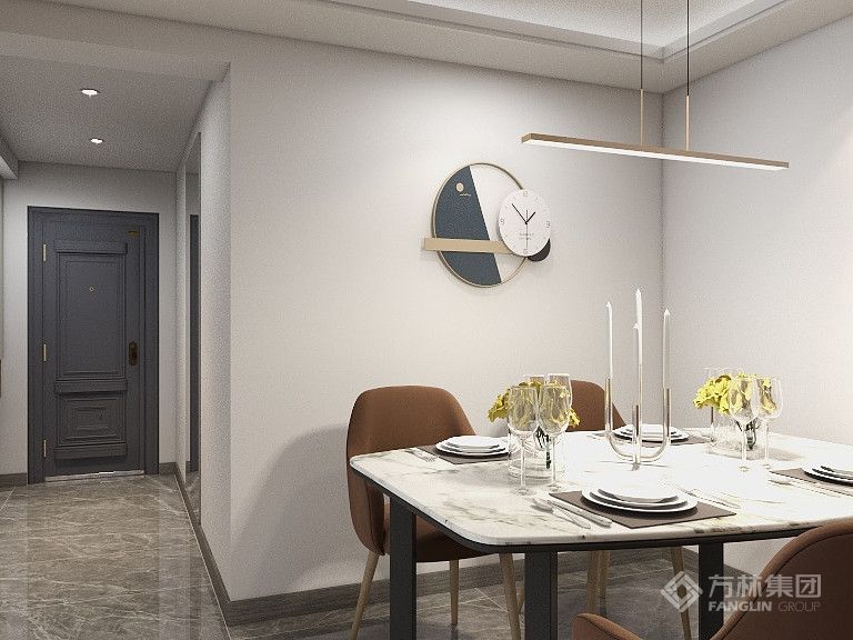 "本案各个功能区域划分合理,充分利用空间的同时又有十足的动线。采用开放式客厅,客厅、餐厅和厨房的完美融合,两个阳台相对,不仅保证了采光,而且显得大气十足。空间以灰色、白色、原木色为主色调,辅以暖橘色、墨绿色和些许粉色作为点缀,整个空间显得自然舒适,又不失格调时尚感"