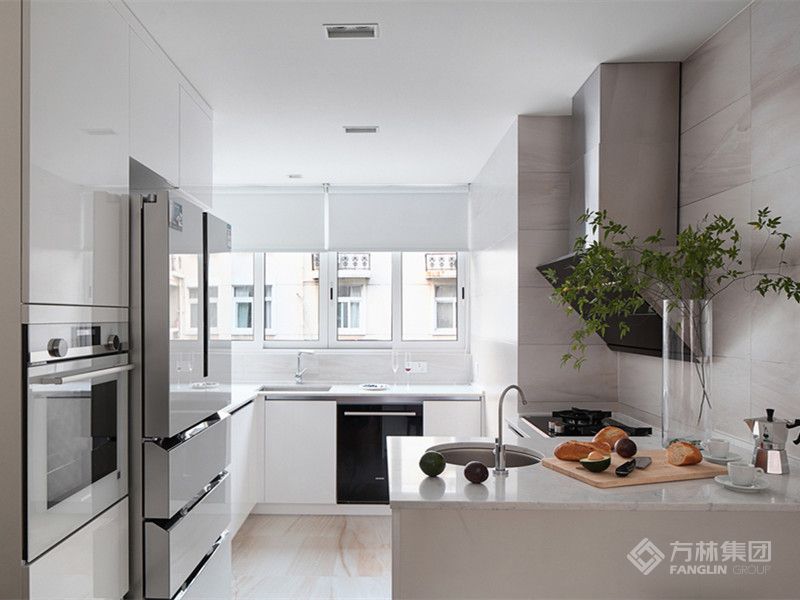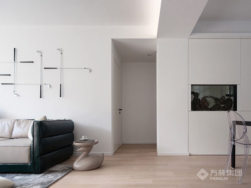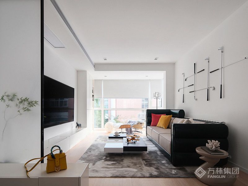 "本案各个功能区域划分合理,充分利用空间的同时又有十足的动线。采用开放式客厅,客厅、餐厅和厨房的完美融合,两个阳台相对,不仅保证了采光,而且显得大气十足。空间以灰色、白色、原木色为主色调,辅以暖橘色、墨绿色和些许粉色作为点缀,整个空间显得自然舒适,又不失格调时尚感"