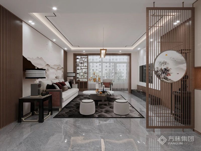 该案例为新中式风格,东方建筑美学结合现代家居设计,整体风格沉稳大气,清雅的空间色调更突显了家居格局的干净明快。