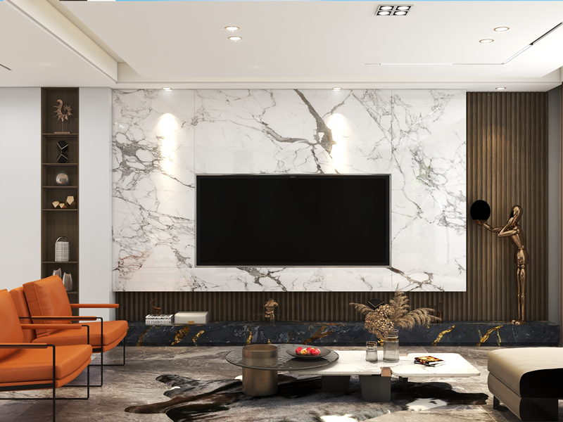 客户是中年夫妻,偏向现代风格,但是又觉得现代风格不太高档,最终确定港式风格。港式风格是现代风格的一种,注重运用石材理石,和金属镜面搭配。看上去大气有质感。